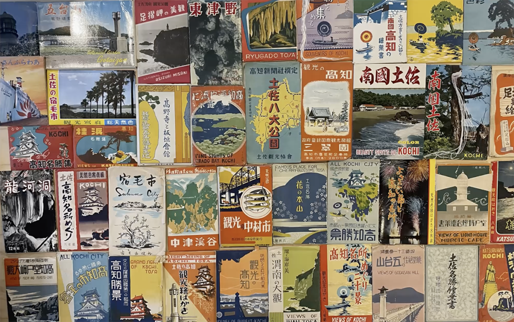 こんな感じで戦前から昭和あたりの高知県に関する絵葉書をずっと集めています。今ではもう観光地でもないところが当時は有名な観光地だったり、もうなくなってしまった自治体の絵葉書などですね。今では見られない風物も多く写っていて面白くて。